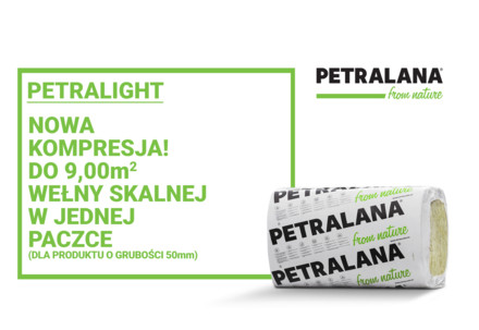 Poprawa tego parametru to gwarancja oszczędności zarówno w cenie transportu jak i oszczędność miejsca potrzebnego do składowania materiału na budowie. Nowa kompresja pozwala zmieścić w jednej paczce produktu PETRALIGHT do 10,80 m2 wełny skalnej o grubości 50 mm. Warto zaznaczyć, że produkt, po otwarciu skompresowanej paczki, powraca do deklarowanych wymiarów. Aktualnie płyty produkowane są w nowym rozmiarze 1200 x 600 [mm], co umożliwia ich łatwą i ergonomiczną aplikację w izolowanych przestrzeniach konstrukcyjnych oraz dystrybucję w praktycznym i bardzo wygodnym do transportu opakowaniu.”